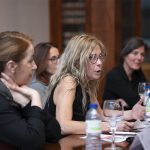 Mayayo estimó que las mujeres artistas “se enfrentan a una situación de precariedad” influida por los sesgos de género y “su doble papel en el ámbito productivo y reproductivo”. Por su parte, María Gimeno, creadora de performances e intervenciones artísticas de vanguardia, comentó su experiencia personal: “Yo tenía un escudo protector contra el feminismo hasta que me di cuenta de que libros como Historia del arte, de Ernst Gombrich, no hacían alusiones a las mujeres artistas”. En ese momento, “se me cayó la venda” –en la mesa redonda incluso lo mostró tirando una venda pintada con los ojos de su marido, que previamente se había puesto-. Gimeno instó también a superar la creación de cátedras de género para modificar los contenidos “desde los colegios hasta las universidades”.