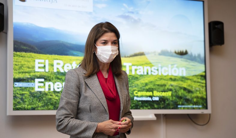 En la adopción de medidas, Carmen Becerril insistió en el proceso de cambio climático que sufre nuestro planeta y que se traduce en España, “un país particularmente sensible”, en una desertificación acelerada, sequías, más incendios forestales, incremento del nivel del mar y la desaparición de ecosistemas como los humedales. Aunque las cumbres mundiales del clima nacen en Río de Janeiro en 1992 no es hasta 2015 cuando “se consigue un entorno favorable en la adopción de medidas”. El Acuerdo de París establece un compromiso para que la temperatura de la Tierra no suba por encima de los 2 grados con respecto a la temperatura preindustrial e incluso se plantea el objetivo del tope de 1,5 grados. Si continuamos con el ritmo actual, de acuerdo con la presidenta del OMIE, alcanzaríamos ese incremento en 2034.