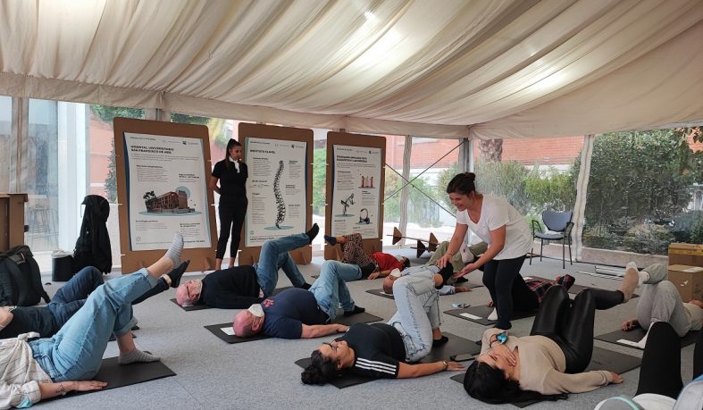 Alumnos del Grado en Enfermería, de la Facultad de Ciencias de la Vida y de la Naturaleza participaron el pasado 19 de octubre en la I Semana de la Columna Vertebral organizada por el Instituto Clavel y el Hospital Universitario San Francisco de Asís con motivo del Día Mundial de la Columna Vertebral. Pudieron formar parte de una serie de acciones encaminadas a concienciar a la población sobre la importancia de cuidar la columna vertebral, visitando una exposición con carácter divulgativo acerca de las patologías de columna más frecuentes y participando en talleres de higiene postural y gimnasia para la espalda.