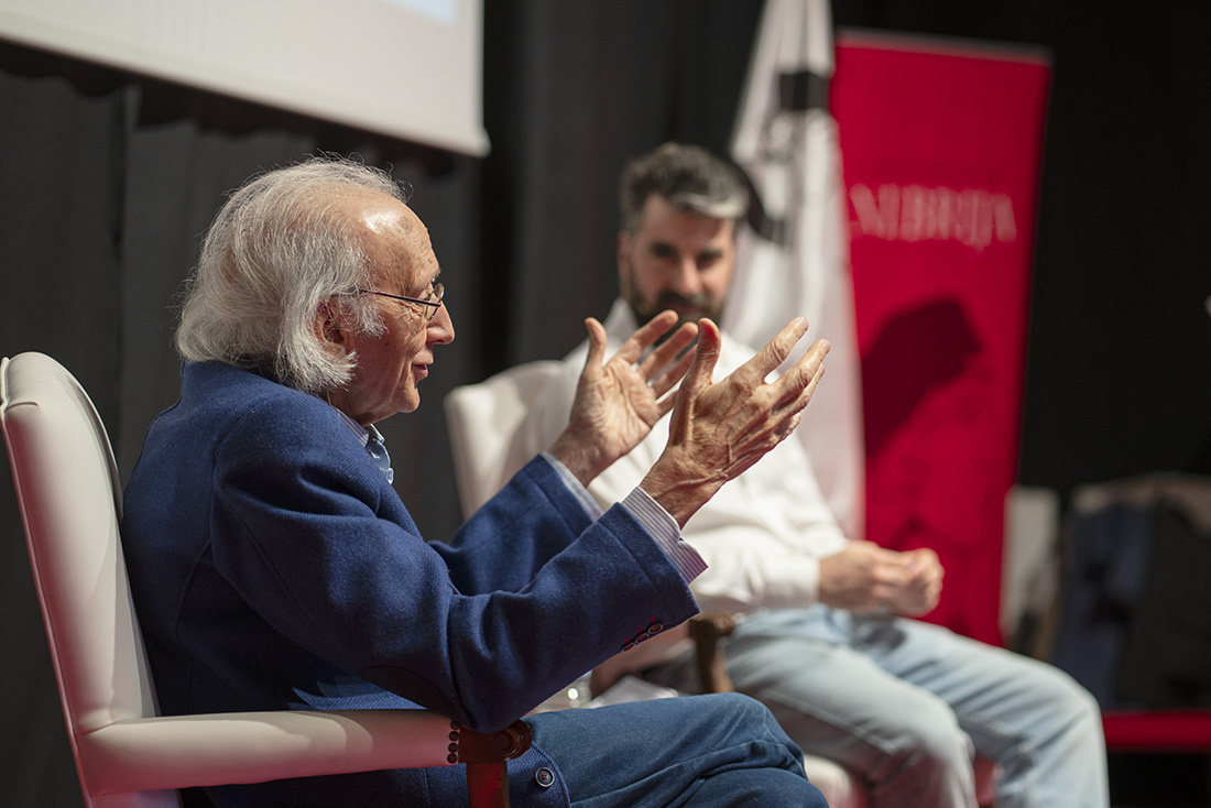 Antes de apagar los focos de la sala, José Luis Alonso de Santos desemboca en una síntesis de calma a la greña con las contradicciones de la vida: “Todo lo que hacemos en la vida está relacionado con el gusto. El horizonte de nuestra vida está marcado por el horizonte del gusto y a ese gusto nos acercamos por medio del lenguaje”.