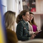 La presencia femenina en la Guardia Civil se circunscribe al 7,1% del total de agentes. Ese porcentaje se reduce al 3,5% de los oficiales y al 2,85% de los suboficiales. Con estos datos, Guillén evidenció la “poca presencia femenina” en la Benemérita: “No podemos perder la mitad de nuestro talento, porque esto merma nuestra misión”. Con el objetivo de dar la vuelta a esta realidad, la comandante enumeró algunos documentos internos como la Guía de conciliación, que ha llegado a la undécima edición, la Guía de uso no sexista del lenguaje (2017), el Protocolo de acoso laboral / acoso sexual / por razón de sexo y el Plan de igualdad. “Tenemos que ser referentes y dejarnos ver. La igualdad y la sensibilización no vienen por arte de magia, sino por la formación”, dijo.