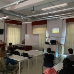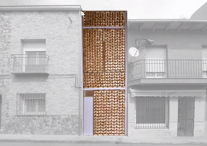 El diseño singular, la tecnología eficiente y el confort emocional, las tres claves de Muka, también se aprecian en construcciones de otros puntos de la provincia de Ciudad Real, como en una vivienda inspirada por el Corral de Comedias de Almagro. Además de una casa en construcción en la localidad de Griñón donde prima el empleo de una celosía colocada a hueso (sin argamasa entre sus juntas) para que “la circulación de la luz cree una atmosfera agradable”, Moisés Royo mostró a los estudiantes otras intervenciones en la Sierra de Madrid, concretamente en Robregordo y en Lozoya. La primera se traduce en un kiosco con chapa perforada, que tiene una doble función: su continua ventilación, incluso cuando está cerrado, y la posibilidad de una realidad “tamizada” a los que miran desde dentro hacia el exterior. La segunda, la de Lozoya, es un trabajo en un cementerio, al que, “por mi vinculación con la arquitectura nórdica integro, al menos en su entrada, al paisaje”. En esta remodelación, Royo situó un banco, donde los habitantes del pueblo pueden descansar en su paseo, y una tapia baja. El arquitecto de Muka no quiso ocultar el cementerio a la sociedad, aunque tampoco se atrevió a abrirlo completamente: “Me quedé en un camino intermedio en esa relación entre la vida y la muerte”.