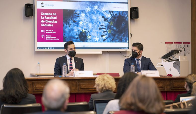 Acompañado en la mesa por Nicolás Marchal, coordinador del Departamento de Derecho y director del Máster en Análisis de Inteligencia y Ciberinteligencia de la Universidad Nebrija, y en el aula por el rector José Muñiz y la decana de la Facultad de Ciencias Sociales Ester Mocholí, Rafael Pérez afirmó que la crisis sanitaria “no nos desbordó” en el ámbito de la seguridad “porque teníamos claro ese concepto de seguridad humana y estábamos preparados con la declaración del estado de alarma donde la seguridad pública se puso al servicio de la salud”.
