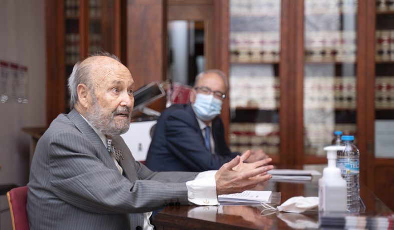 Acompañado de Javier Jiménez-Ugarte, exsecretario general de la Secretaría General de Política de Defensa (SEGENPOL), Javier Rupérez analizó el impacto de la covid-19 en la economía, la sociedad, la política y la vida diaria de las naciones. “Realmente –expuso- ha condicionado nuestra vida hasta el punto de no poder estrechar la mano con otra persona”.