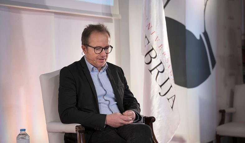 Este titular no pretende rendirle pleitesía al clickbait (ciberanzuelo) ni seducir sin un contenido de altura a los lectores de Actualidad Nebrija. Aquí viene el motivo. Coté Soler, actor, creativo, empresario, exinformático, empieza su conferencia -no fue exactamente una conferencia- con esta pregunta. Repito el titular: “¿Os engancha este tío dubitativo y pequeñito, sentado sin teneros en cuenta?”. Silencio entre los alumnos de la Universidad Nebrija. Muchos sueltan sus móviles y su capacidad para estar en otro lado -de cuerpo presente, pero de mente viajera- y escuchan atónitos esta cuestión, a la que antes había precedido la siguiente introducción al uso: “Soy Coté Soler y os voy a hablar de las habilidades que os van a hacer falta en vuestro trabajo y cómo os tenéis que relacionar con ellas…”.