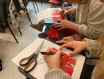 Para la actividad principal de este taller, Li y Ying mostraron a los alumnos una de las grandes tradiciones chinas, el papel cortado (jianzhi). Se trata de una expresión artística que se remonta al siglo II d.C. Un arte hecho con materiales muy simples (papel y navaja de corte o tijeras), pero que requiere de mucha destreza, habilidad y sensibilidad artística. Es un arte ancestral que fue declarado Patrimonio Inmaterial de la Humanidad por la UNESCO.