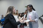 Durante el acto, los asistentes pudieron escuchar fragmentos literarios en 19 idiomas diferentes. Al concluir las lecturas, Melisa Teves anunció la entrega de los premios del XIV Certamen Plurilingüe de Relatos Breves organizado por el Instituto Nebrija de Lenguas Modernas (ILM). “Este año hay cuatro lenguas representadas: inglés, francés, alemán y español para extranjeros. Desde el Instituto de Lenguas Modernas nos gustaría felicitar a los premiados y a todos los alumnos y alumni de la Universidad que han participado en este certamen”, recalcó.