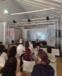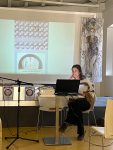 La sesión de tarde comenzó a las 17 horas en el Campus Princesa con la intervención de la joven artista Elisa Pardo que compartió en Narrar dentro de narraciones su elaboración mediante el conceptualismo lingüístico de sus vivencias en una residencia de artistas en Alemania y cómo empleó su arte como elemento de afirmación personal frente al autoritarismo.