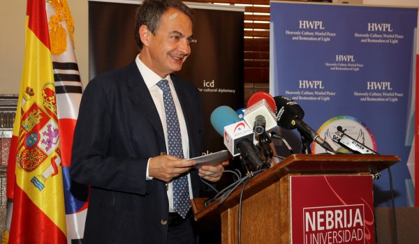 Madrid, 15 de julio 2014. “La Paz no admite la fatiga, ni aún menos la resignación”. Con estas palabras, José Luis Rodríguez Zapatero ha comenzado su intervención esta mañana en el Symposium on Peace Building & Conflict Resolution “The Promotion of World Peace through Inter-Faith Dialogue & Global Political Discourse” que organiza el Institute for Cultural Diplomacy y que tiene lugar en la Universidad Nebrija hasta el jueves 17 de julio.