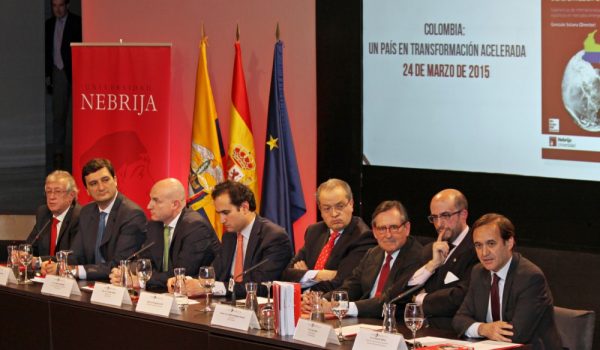 Madrid, 25 de marzo de 2015.- La Universidad Nebrija presentó ayer en la Casa de América las conclusiones publicadas en el libro Colombia: un país en transformación acelerada. Un acto que contó con la participación del embajador de Colombia en España, Fernando Carrillo Flórez; el vicepresidente del Banco Santander, Matías Rodríguez Inciarte; el consejero delegado del ICEX; Francisco Garzón el vicepresidente ejecutivo del Consejo Rector de la Universidad; Joaquín Espallargas; elrector de la Universidad Nebrija, Juan Cayón; el director de la Cátedra Nebrija- Grupo Santander, Gonzalo Solana y el director de la Casa de América, Tomás Poveda.