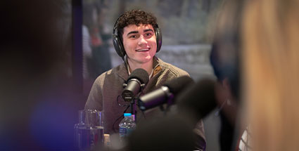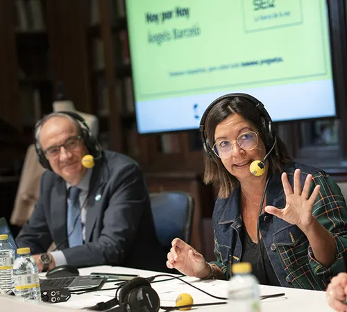 Los alumnos del Máster en Formación Permanente en Radio, Podcast y Audio Digital de la Universidad Nebrija han estrenado el curso con la retransmisión en directo de Hoy por hoy. El matinal de la Cadena SER que dirige y presenta Àngels Barceló se ha emitido desde la biblioteca de la Universidad Nebrija.