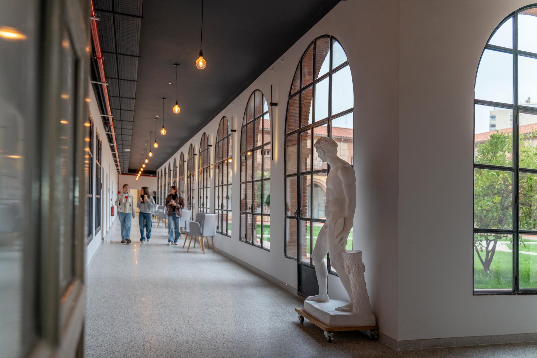 The Nebrija Contemporary Art collection, placed throughout the walls, corridors and public spaces of the former convent, the student projects in the niches set up for temporary exhibitions, as well as in the gallery that overlooks the street and welcomes anyone entering the campus, bring to life and enhance the experience for students and teachers.