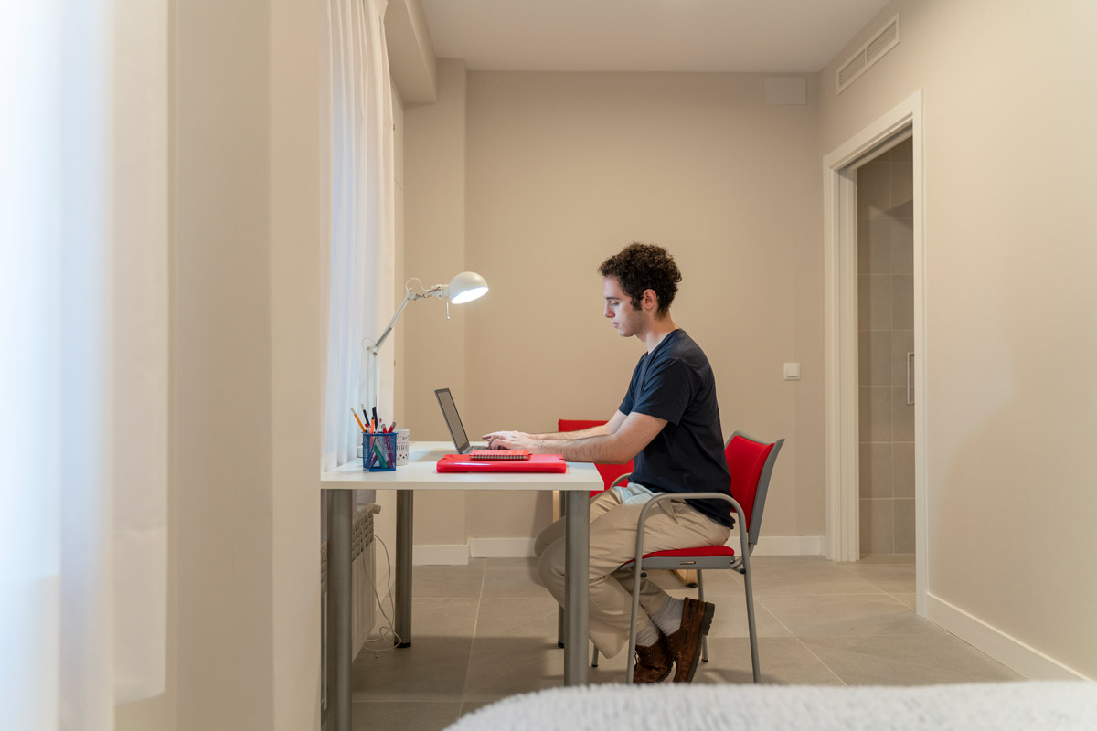 Todos los servicios incluidos, amplias zonas comunes, numerosas salas de estudio y trabajo y la confianza de una atención personalizada 24/7 para que te sientas como en casa.