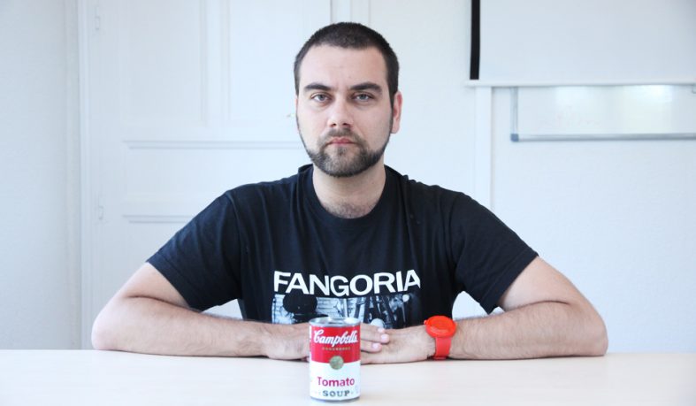 El profesor Nicolás Grijalba, de la Facultad de Ciencias de la Comunicación, hace un recorrido por la exposición de fotografía de Andy Warhol que acoge el centro cultural Fernán Gómez.
