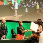 La entrega de diplomas tuvo lugar a continuación, entre los aplausos del público, dando paso a la intervención de dos de los alumnos, la entrega del premio Wolters Kluwer, la entrega de trofeos de las actividades deportivas y unas palabras del presidente de Garrigues Abogados y Asesores tributarios, Antonio Garrigues, que, elocuente como siempre, se deshizo en elogios al Centro de Estudios y afirmó que podemos, y debemos, salir de la crisis trabajando duro y con ahínco.