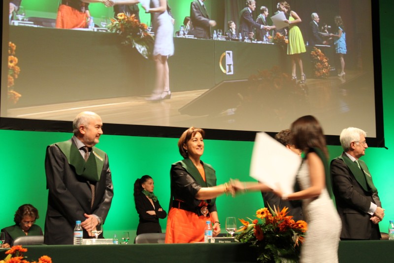 La entrega de diplomas tuvo lugar a continuación, entre los aplausos del público, dando paso a la intervención de dos de los alumnos, la entrega del premio Wolters Kluwer, la entrega de trofeos de las actividades deportivas y unas palabras del presidente de Garrigues Abogados y Asesores tributarios, Antonio Garrigues, que, elocuente como siempre, se deshizo en elogios al Centro de Estudios y afirmó que podemos, y debemos, salir de la crisis trabajando duro y con ahínco.