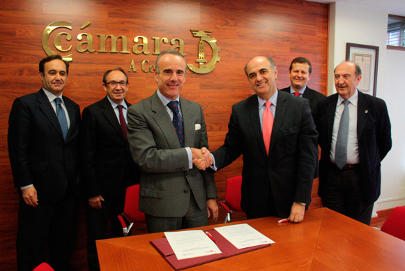 La Cámara de Comercio, Industria y Navegación de A Coruña y Nebrija Business School han firmado un convenio de colaboración que amplía la oferta formativa para empresas y profesionales de A Coruña. El presidente de la Cámara de A Coruña, Marcelo Castro-Rial Schuler, y el director general de Nebrija Business School, Antonio Díaz Morales, sellaron el miércoles 6 de febrero el acuerdo de colaboración que permitirá el desarrollo de forma conjunta del Senior Leadership Program.