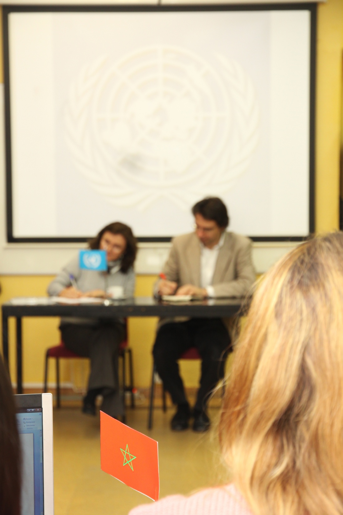 Los alumnos, en representación de los diferentes países pertenecientes a las Naciones Unidas, participaron en esta simulación. Expusieron su posicionamiento como representantes de sus respectivas naciones, en relación al programa nuclear de Irán.