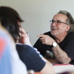 Miki Espuma, componente de La Fura dels Baus, charló con los alumnos de Nebrija en el marco del programa Artistas en la Universidad, el miércoles 17 de abril en el Campus de La Berzosa.