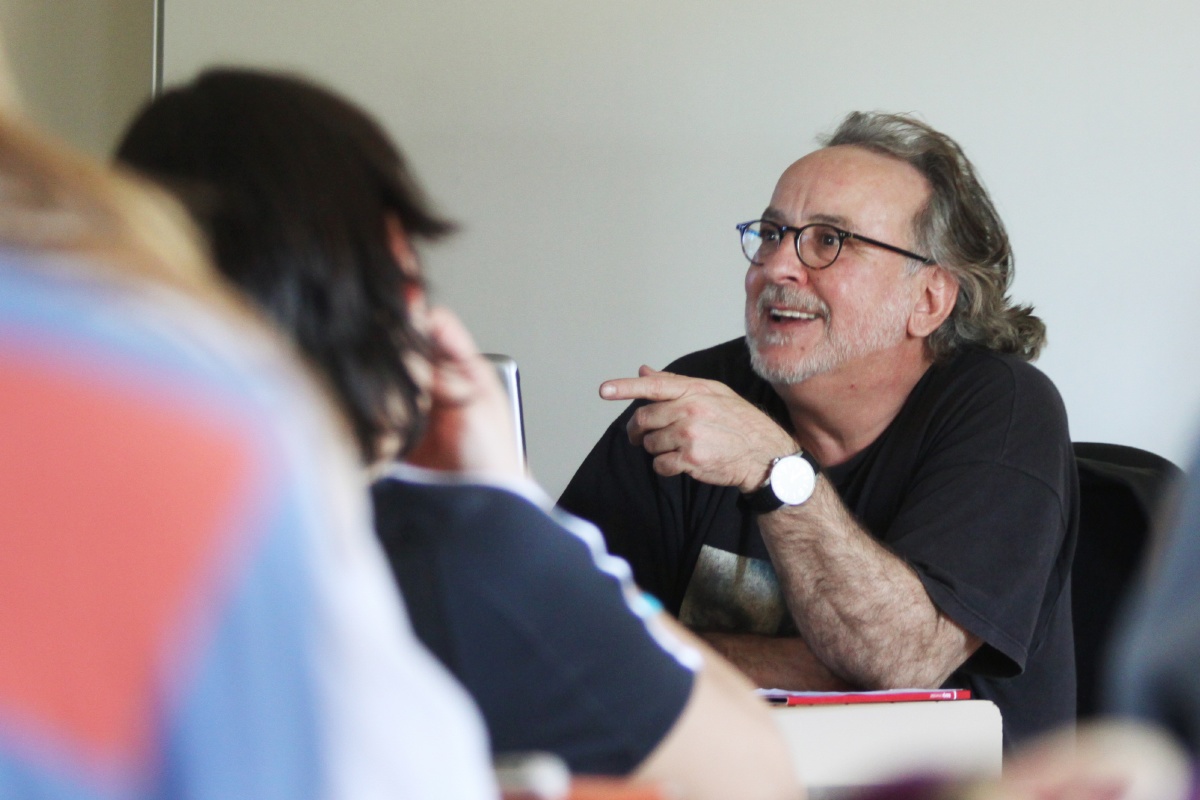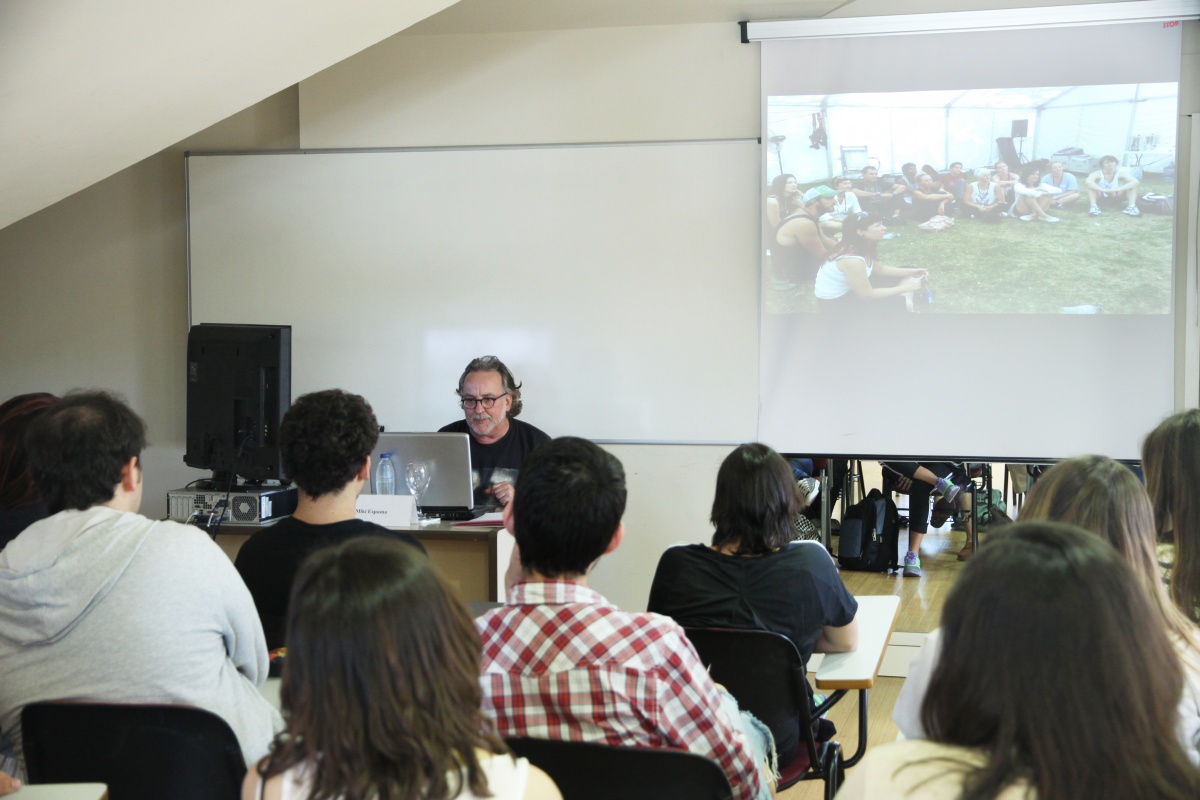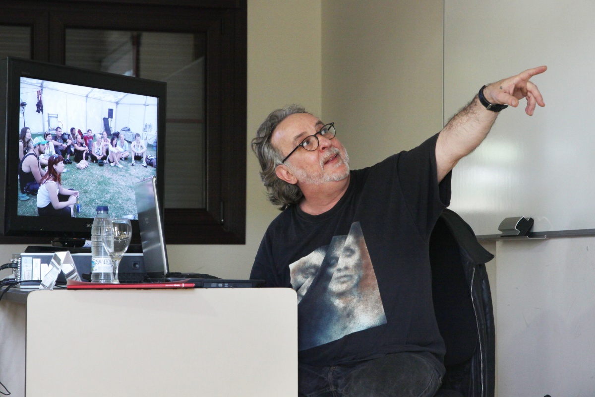 Miki Espuma, componente de La Fura dels Baus, charló con los alumnos de Nebrija en el marco del programa Artistas en la Universidad, el miércoles 17 de abril en el Campus de La Berzosa.