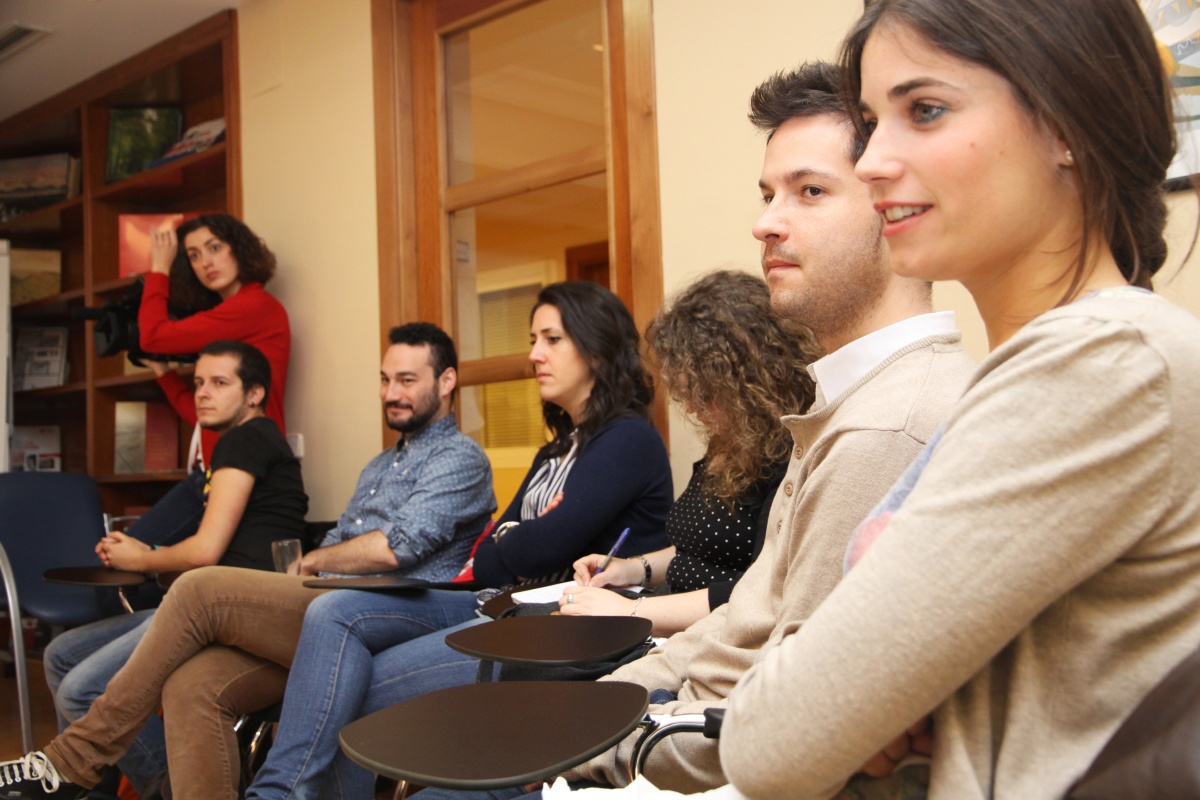 El periodista Carlos del Amor habla sobre la profesión “más bonita del mundo” con los alumnos de la Universidad, en los Cafés del Club Nebrija