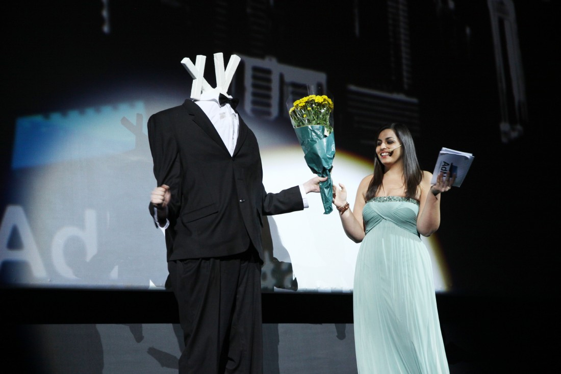 Este año, la gala del Festival AdN estuvo conducida por una presentadora, Judith Ortega, que recordaba a las estrellas del Hollywood dorado. Estuvo acompañada por un simpático monstruo (Ibai Mikelajauregui), nacido de la imaginación del trío de directores del festival: Alfredo Novais, Javier Montero y Juan Luis Muñoz. Los directores también fueron los responsables de mostrar al público la particular historia de amor entre el monstruo y Rebeca.