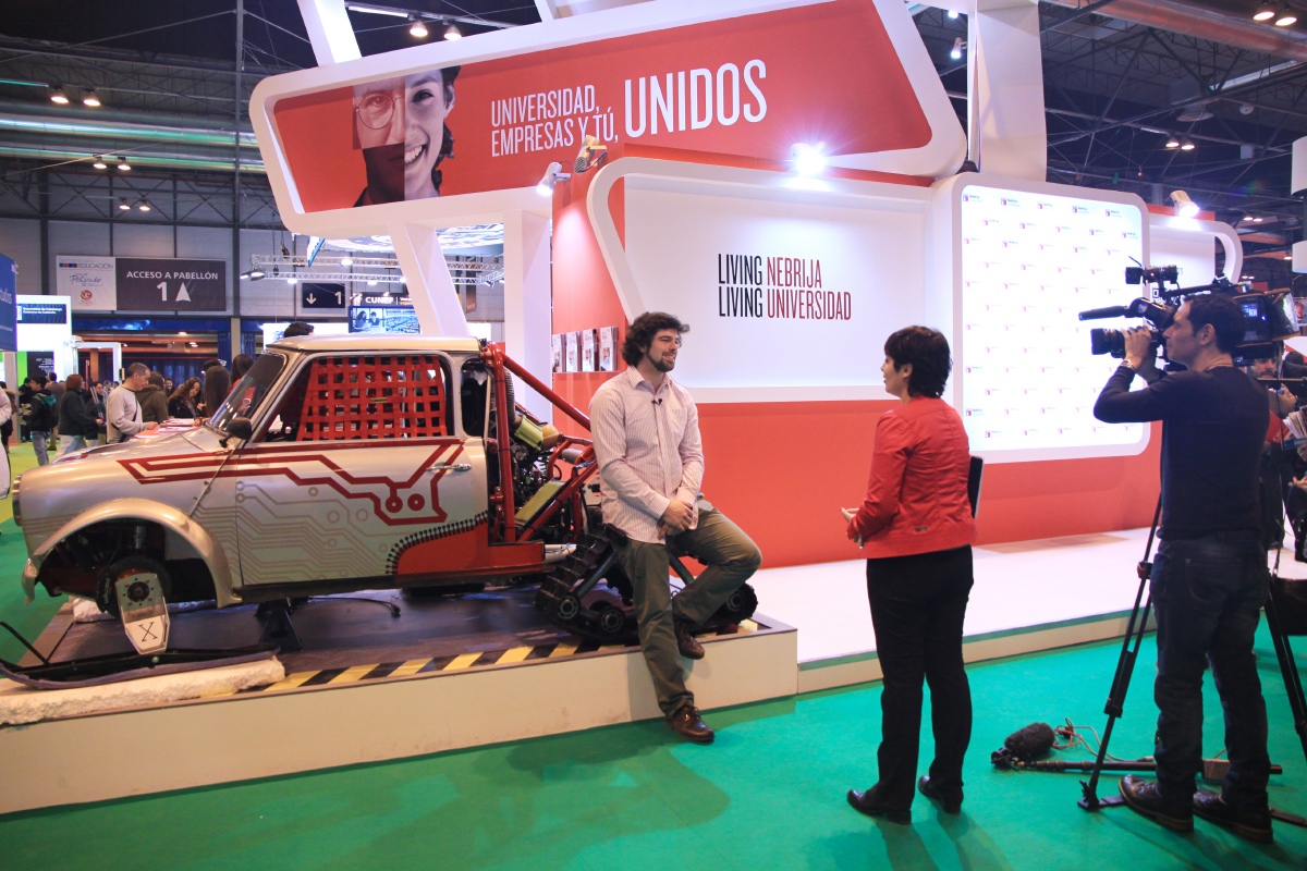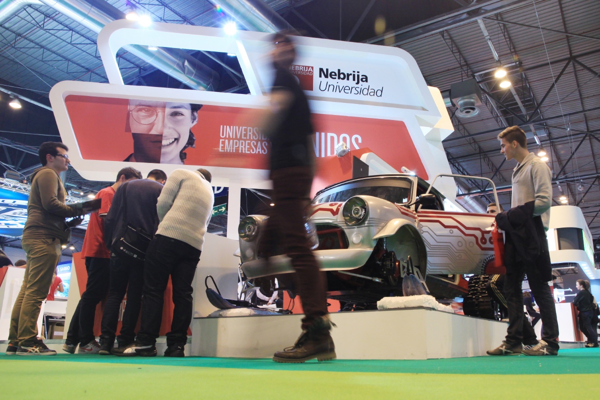 Este año la Universidad Nebrija ha vuelto a mostrar en el stand de Aula la evolución del Austin Mini Cooper. Un coche que los alumnos de la Politécnica han ido modificando de cara a las posibles competiciones universitarias. Los estudiantes de Ingeniería Industrial, Diseño Industrial e Ingeniería del Automóvil ofrecieron información a todos los jóvenes preuniversitarios que se acercaron hasta el mítico coche.