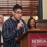 Los premios de este certamen literario se entregaron, al igual que en anteriores ediciones, durante la celebración de esta cita con las letras. Almudena Sá Mayoral, en representación de Berta Cuadrado Mayoral, alumna del Máster Universitario en Lingüística Aplicada a la Enseñanza de Español como Lengua Extranjera de la Universidad Nebrija, recogió el Premio para alumnos por su obra “El hilo”. El Premio Club Nebrija Docentia para PDI y PAS fue para Marta González Caballero, profesora de la Facultad de Ciencias de la Comunicación, por su relato “Phaistos era mujer”. José Luis Aranda Bugallo, alumno del Colegio Virgen de Mirasierra, recibió el Premio de microrrelato preuniversitario, por su obra “Algo más que piedra”. El Premio Español Nebrija – modalidad microrrelato – fue para Natalie Duda, alumna del Davidson College (Estados Unidos), por su obra “Los cinco céntimos”.