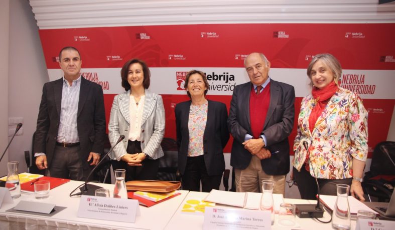 Alicia Delibes, viceconsejera de Educación, Juventud y Deporte de la Comunidad de Madrid, Carlos Marchena, inspector de Educación de la Consejería de Educación, Cultura y Deporte de la Junta de Andalucía, José Antonio Marina, director de la Cátedra Nebrija-Santander en Inteligencia Ejecutiva y Educación y presidente de la Fundación Universidad de Padres, y Carmen Pellicer, presidenta de la Fundación Trilema, acompañaron a los asistentes durante esta jornada.