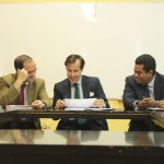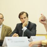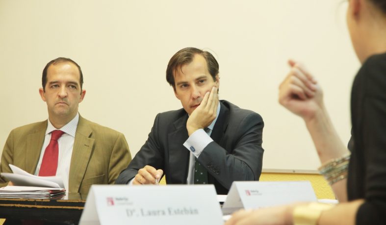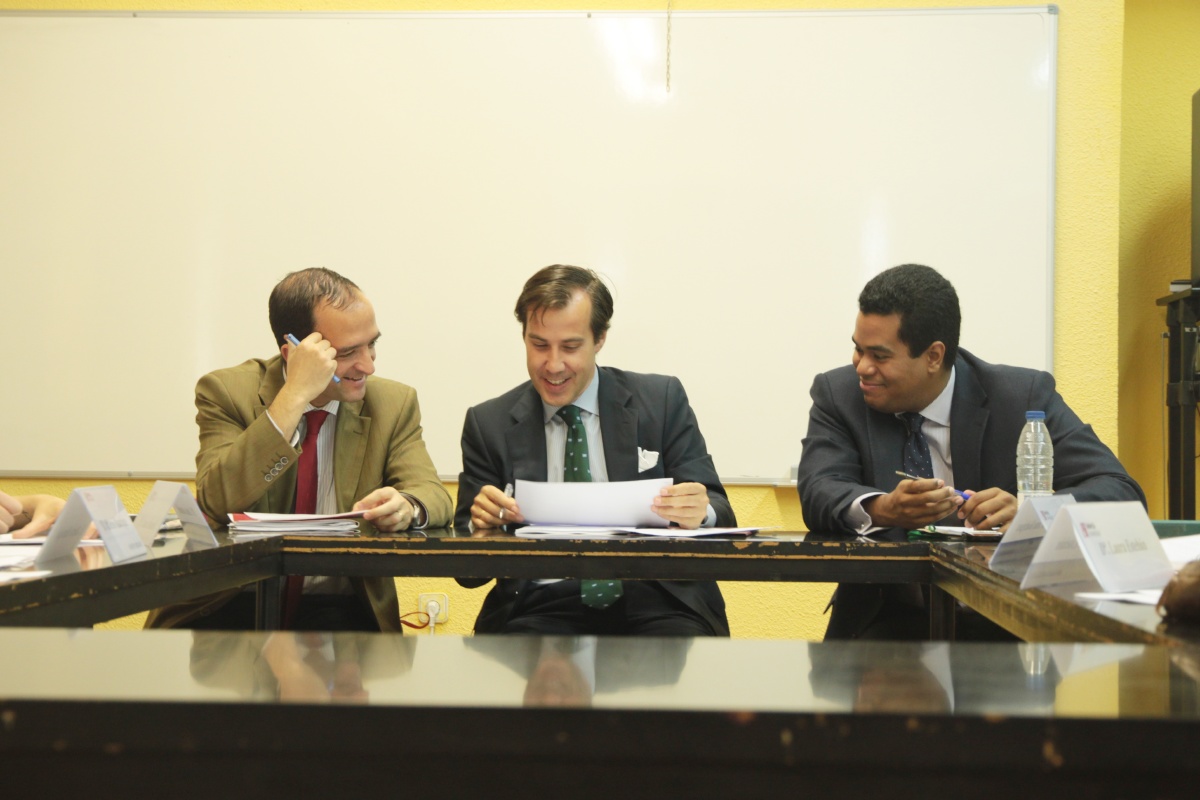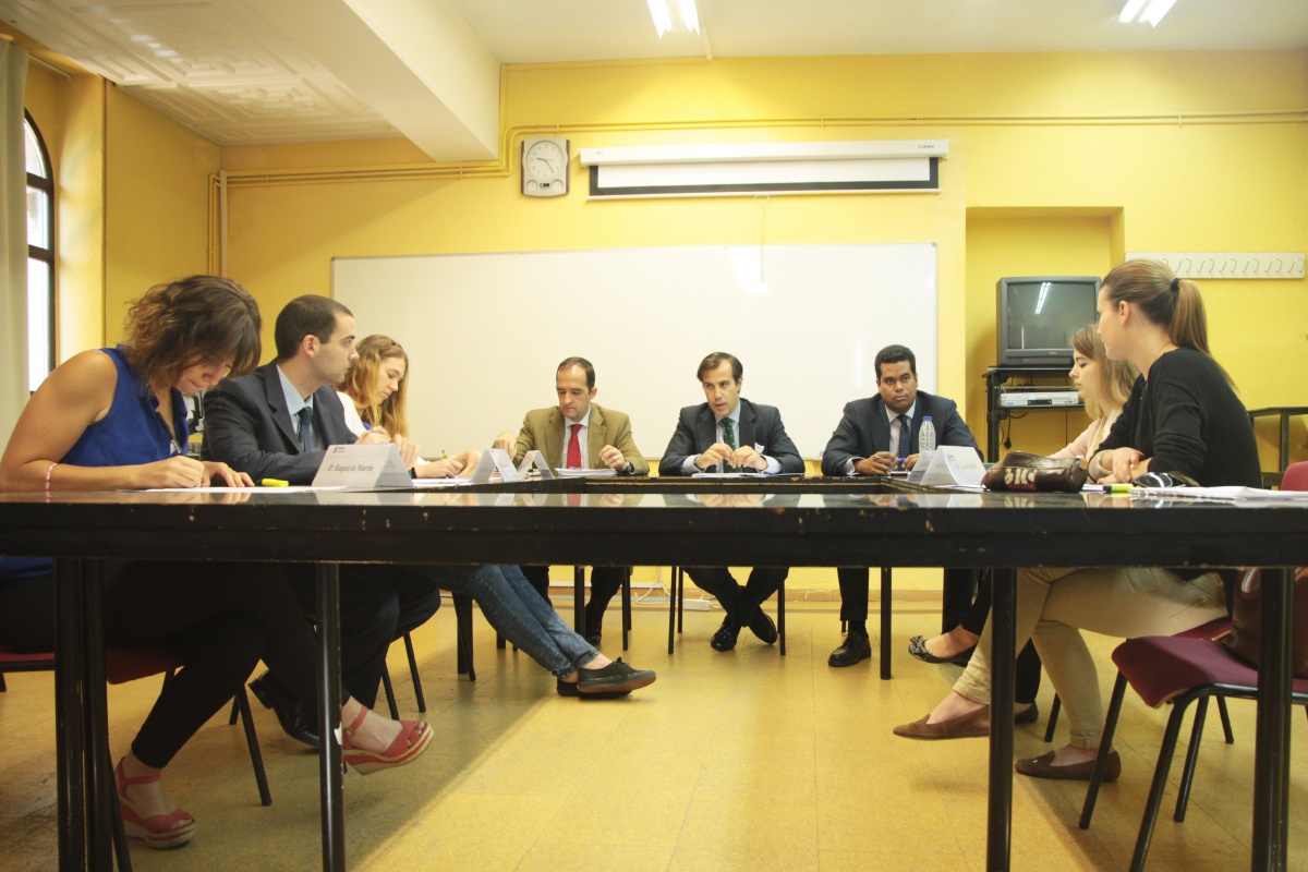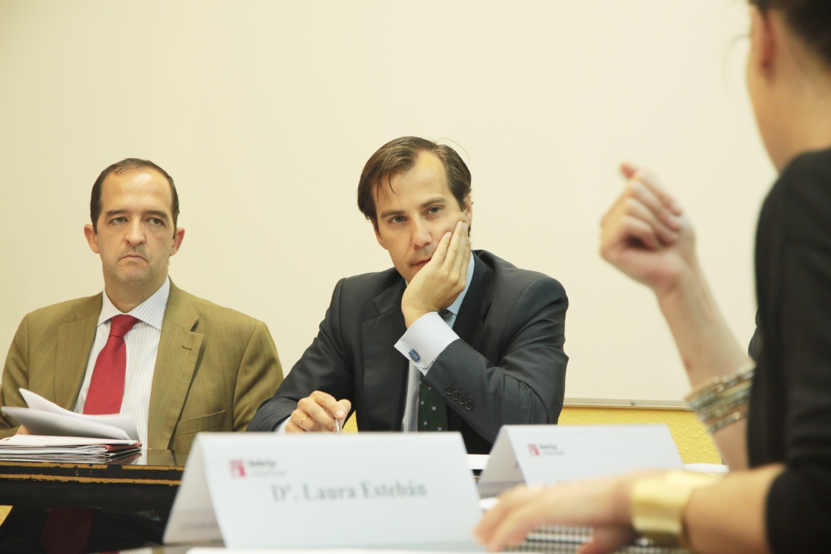 Fernando Díez Estella y Luis García, profesores de la Facultad de Ciencias Sociales, y Gonzalo Jimenez de Andrade, abogado de Cuatrecasas, participaron en esta simulación en calidad de árbitros.