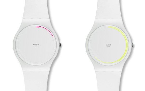 Según explica su creador, “Swatch Ring Watch” supone la máxima simplificación del reloj de pulsera tradicional mediante la eliminación de números y agujas, proporcionando un aspecto limpio y sencillo en contraste con el color de la pareja de anillos encargados de representar el tiempo.