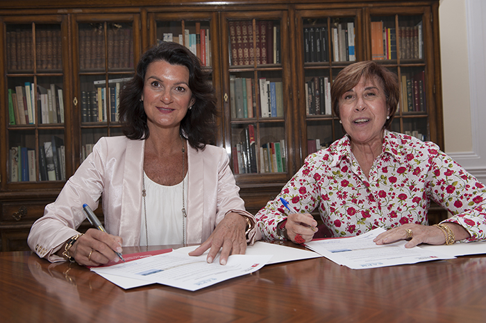 Marta Perlado Lamo de Espinosa, decana de la Facultad de Ciencias de la Comunicación, y María Jesús Chao Álvarez de Sierra, Secretaria General de la Asociación de la Prensa de Madrid (APM), firmaron el lunes 26 de mayo en la APM un programa de becas Club-Nebrija Empresas e Instituciones para cursar dos másteres universitarios en Periodismo de la Universidad Nebrija.