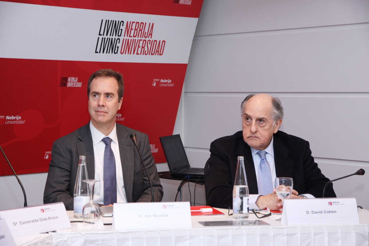 Enrique Fernández, decano de la Facultad de Ciencias Sociales, ha inaugurado el encuentro en la Fundación Nebrija, que ha contado con la participación de Esmeralda Díaz-Aroca, profesora asociada de Nebrija Bussiness School y socia directora de Jonia Consulting, Jesús Manuel González, creador de BlogsterApp: Emprendedor y CEO de BlogsterApp, Jim Novack, CEO de Dynatec S.A y creador de Talent Swarm, Aleksandar Mandic, CEO de MandicmagiC.com, y David Cohen, profesor de Estrategia de Nebrija Business School.