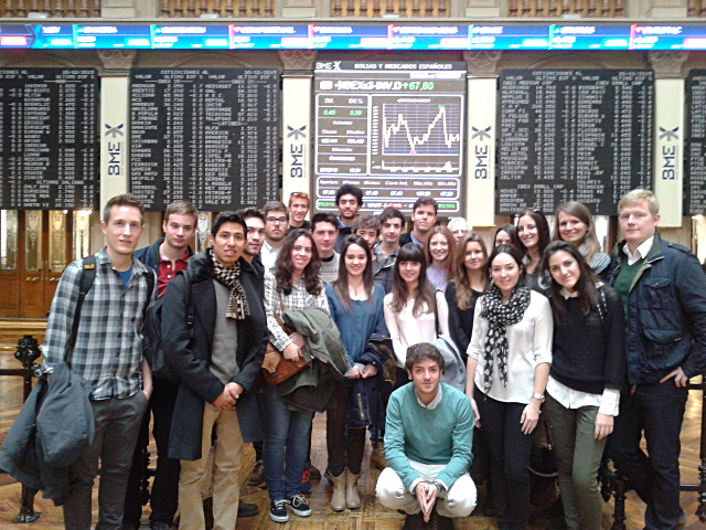 Acompañados por el profesor Víctor Conde, de la Facultad de Ciencias Sociales, hicieron un recorrido por las instalaciones de la Bolsa de Madrid, una institución creada en el año 1831.