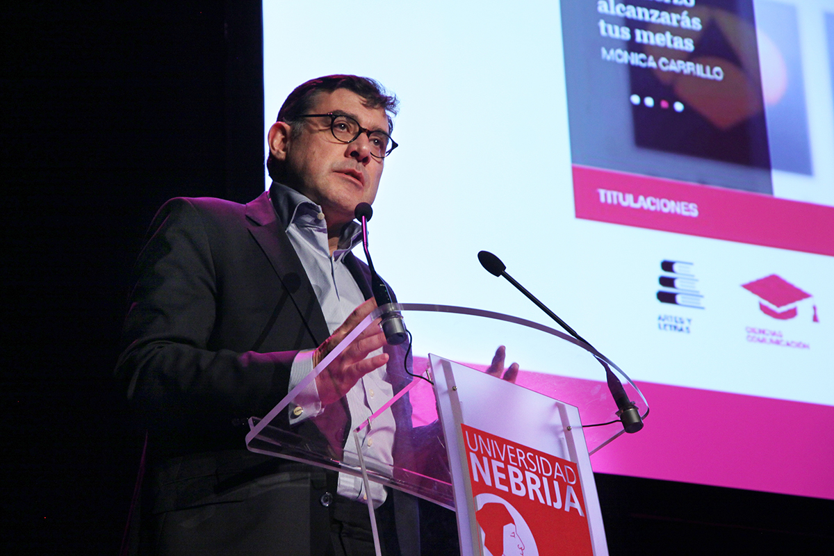 Por su parte, Joaquín Espallargas-Iberni recorrió los éxitos recientes de la institución y explicó los desafíos y apuestas de futuro, enalteciendo como motores clave la inauguración del nuevo Campus de Princesa, el impulso a la investigación, la consolidación de la enseñanza a distancia y blended y el liderazgo en la empleabilidad de los egresados. “Nuestra tasa de empleabilidad está por encima de la media de las universidades privadas y de las públicas, según datos del Ministerio de Educación”, indicó para proseguir diciendo: “Ello dice mucho de nuestro modelo académico y del esfuerzo que todos estamos desarrollando; gracias a toda la Comunidad Nebrija por su apoyo”.