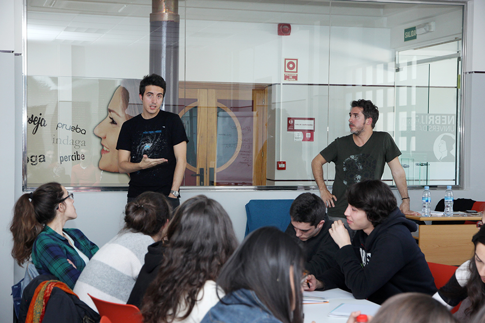 Una completa planificación, un guión muy trabajado y buen ambiente de trabajo son esenciales en los cortometrajes de los hermanos Esteban Alenda. Así lo han asegurado los dos directores y guionistas durante el Seminario de Guión de Cortometrajes que imparten los días 10, 12 y 17 de marzo en la Universidad Nebrija.