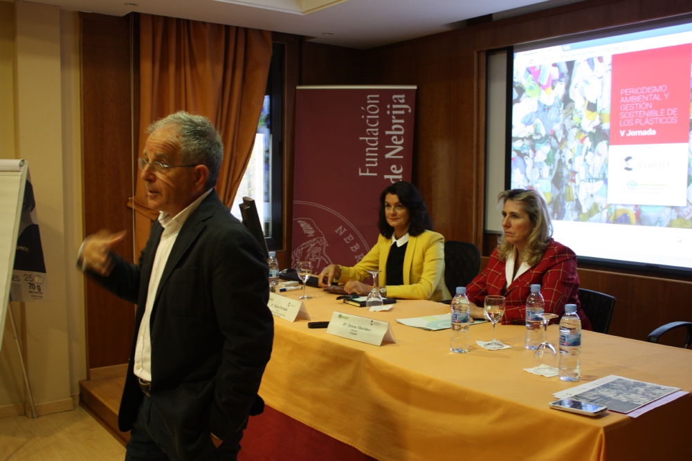 La Fundación Nebrija acogió el 9 de abril la V Jornada de Periodismo Ambiental y Gestión Sostenible de Plásticos, organizada por el Aula Cicloplast-Nebrija del reciclado del plástico, comunicación y educación ambiental, que dirige el profesor Carlos Cachán. Inauguraron el seminario Teresa Martínez, directora de Cicloplast, y Marta Perlado, decana de la Facultad de Ciencias de la Comunicación.