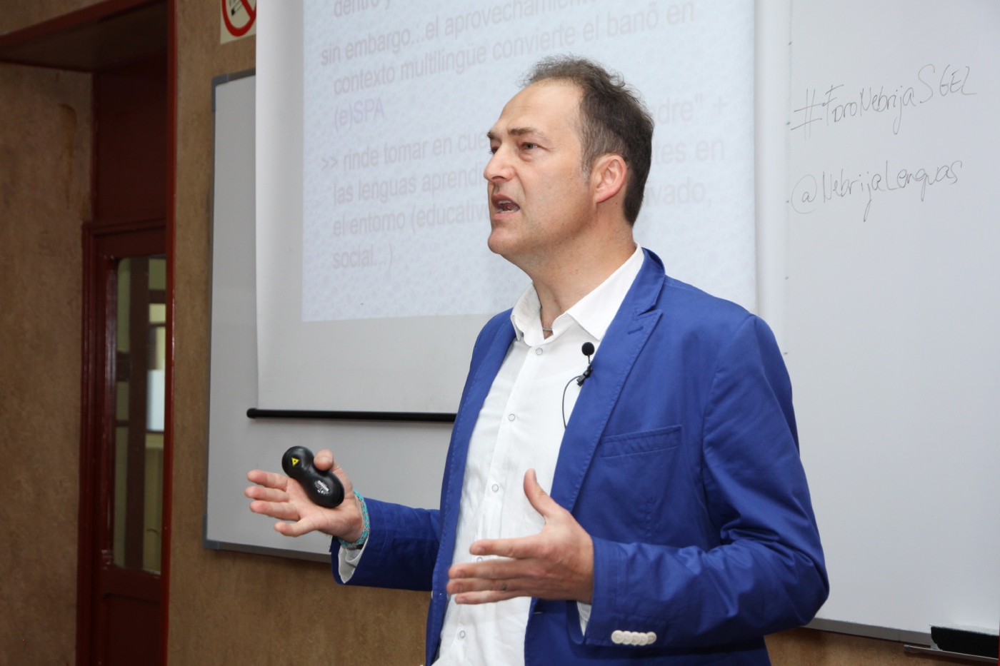 Kris Buyse, profesor asociado de la KU Leuven profesor invitado de los cursos de Máster y de Doctorado sobre aprendizaje de lenguas de la Universidad Nebrija, inauguró el encuentro. Con su conferencia abordó la importancia del análisis de problemas y oportunidades contrastivos para el aprendizaje y la enseñanza de lenguas.