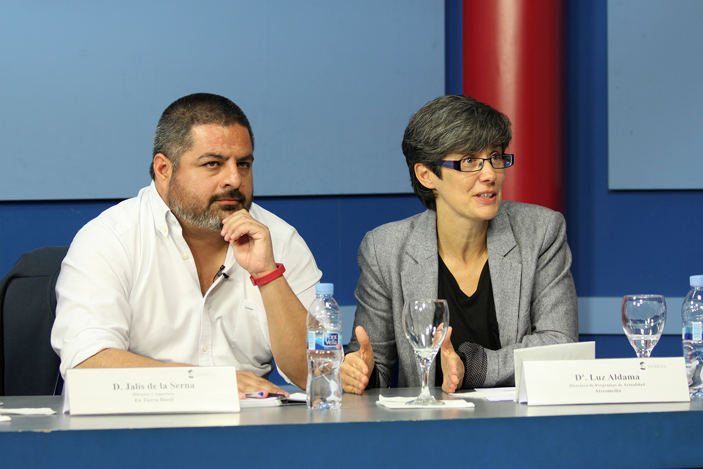 Luz Aldama, directora de Programas de Actualidad Atresmedia, Jalis de la Serna, director y reportero de En Tierra Hostil, y Flora Sánchez Castañón, directora de UniprexTV, visitaron la Universidad Nebrija el martes 28 de febrero para explicar a los alumnos cómo se realiza este programa, las claves de su éxito y el trabajo que hay detrás de cada emisión.