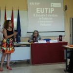 Seguidamente intervino la profesora Dra. María Ortiz, coordinadora de los grados en Lenguas Modernas y Traducción, quien habló sobre el programa y el valor de la participación de los alumnos en él. María hizo un repaso sobre el papel del traductor en la sociedad actual recordando que “es un mediador cultura, el más antiguo por excelencia” y que éste “tiene que tener una mente abierta y eliminar prejuicios”.