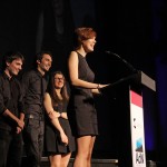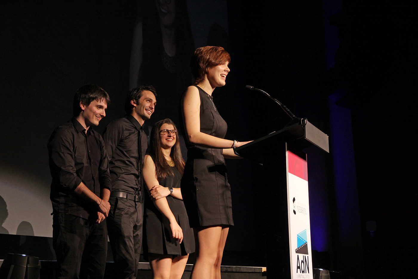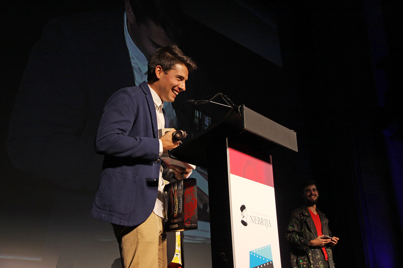 El gran ganador de la noche fue Daniel Allúe, alumno de Comunicación Audiovisual y Publicidad, que recibió por su inquietante obra Dinosaurios, el premio al mejor cortometraje, al mejor guión y el del público. “Os animo a seguir luchando por vuestros sueños, dijo, porque es la única manera de alcanzarlos.” Por su parte, Cristina Beltrán, directora e intérprete en el trabajo Yo no soy complicada, recibió el de mejor actriz. “Si pones pasión en lo que haces consigues lo que quieres”, dijo. Además, recibió el premio a la mejor dirección Marta Torres, por One minute older; Itsaso Pol, recibió el de mejor montaje y postproducción por su obra 13.