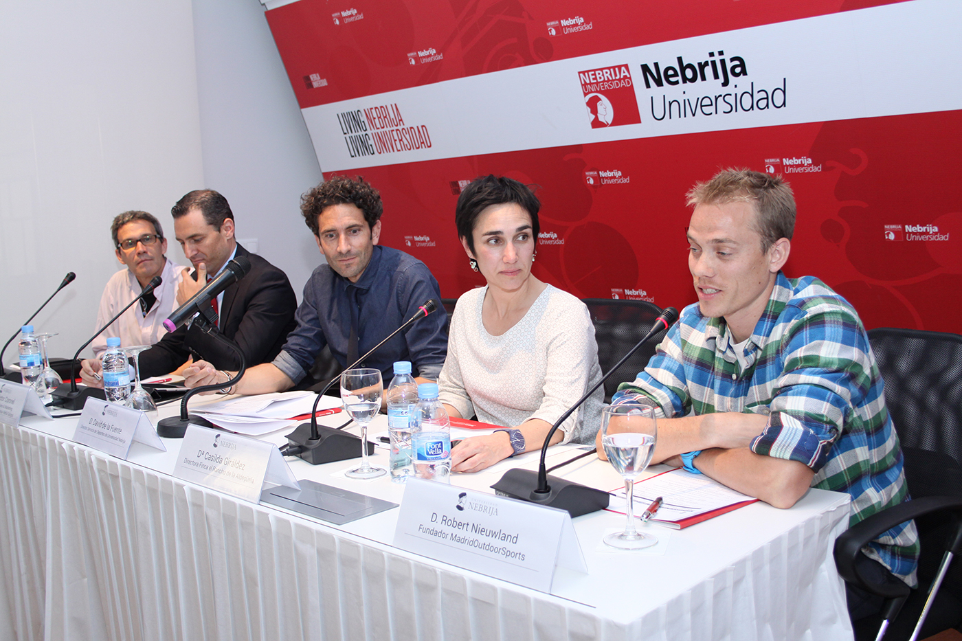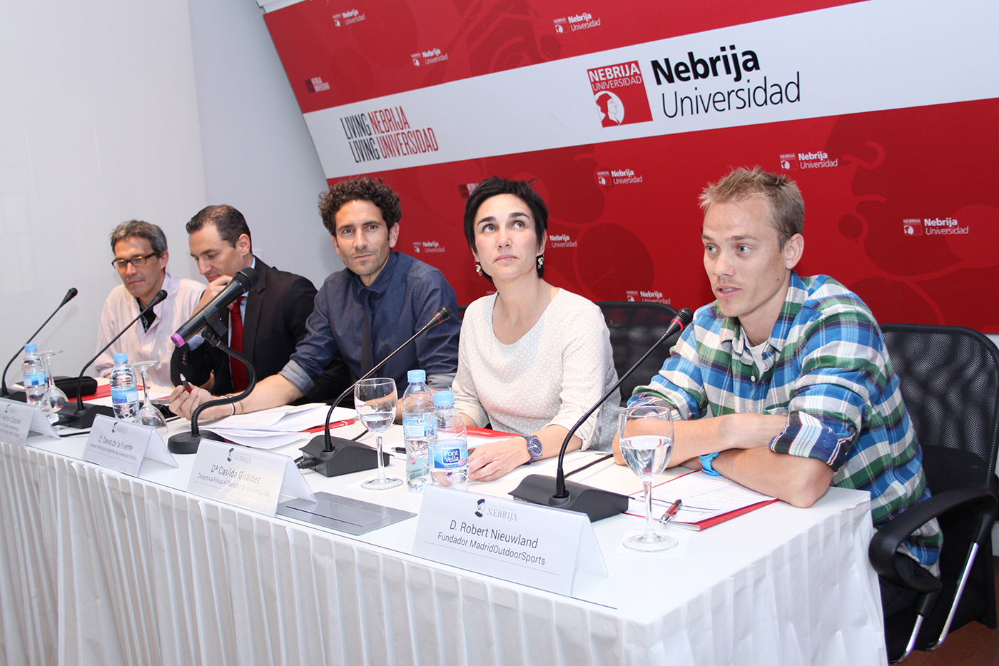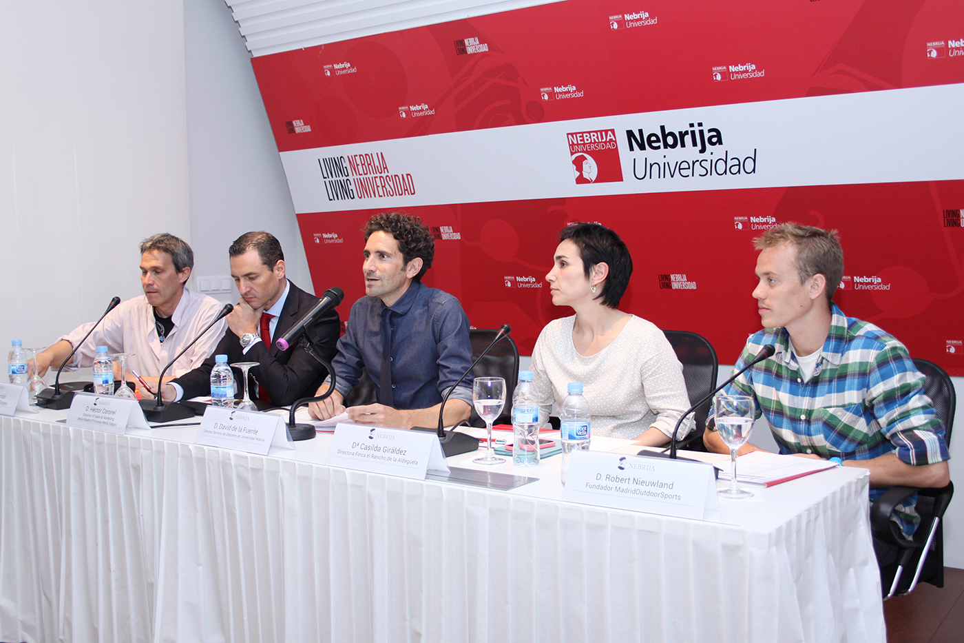 La jornada, moderada por David de la Fuente Franco, director del Servicio de Deportes de Nebrija, tuvo lugar el 7 de mayo en la Fundación Nebrija y contó con la participación de Héctor Coronel, director de Compras & Marketing del Meliá Madrid Princesa & Meliá Galgos, Juan Sarrión, director de Rutas Pangea, Casilda Giráldez, propietaria de la Finca el Rancho de la Aldegüela, y Robert Nieuwland que, además de fundador de MadridOutdoorSports, es antiguo alumno de la Universidad.