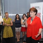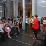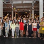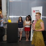 Nieves Acedo, directora del Máster en Mercado del Arte y Gestión de Empresas Relacionadas, Diego Díez, alumno del máster, y parte del equipo comisarial conformado por Laura Darriba, Postrimera Beard y Guadalupe Linares, junto con la profesora Esther Moñivas, coordinadora académica del equipo comisarial, y Amaia de Meñaka, coordinadora técnica del equipo, inauguraron la exposición AB OVO, el viernes, 29 de mayo, en el centro de creación contemporánea Matadero Madrid.
