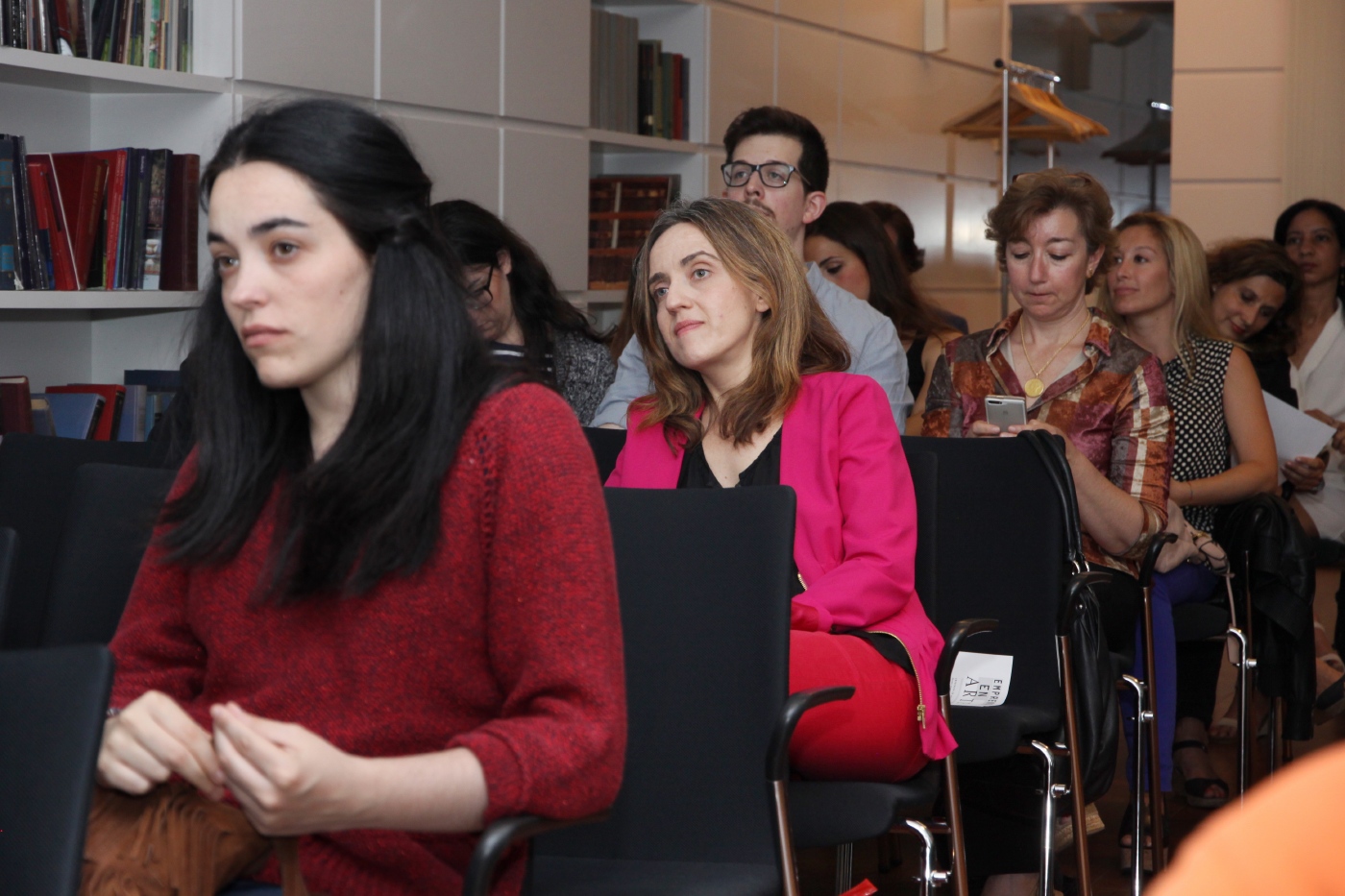 El encuentro contó con una selección de antiguos alumnos del Máster en Mercados del Arte, que describieron y expusieron sus proyectos personales. Borja Díaz de Megotti, director de la galería The Goma, relataba su experiencia y aconsejaba: “Curtirse en la artes, la música, el teatro… es lo que va a mantener el interés y permitir que desarrolléis vuestra carrera profesional”, analizando también algunos problemas que surgen en España: “Una galería es un papel en blanco, un generador de ideas. El panorama en España es complicado: hay galerías muy buenas, y poca demanda, hay que intentar salir fuera, conseguir clientes.”