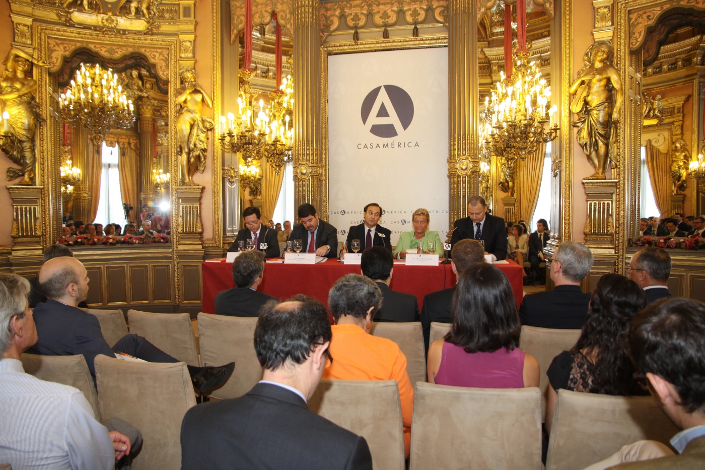 La abarrotada Sala Embajadores de Casa América ha sido el escenario de este encuentro en el que Óscar Dávila, director gerente de la institución, inauguró como anfitrión: “Este evento, que se ha convertido ya en un referente empresarial de la capital con sede en Casa América, es la caja de resonancia del mundo empresarial latinoamericano en España”.