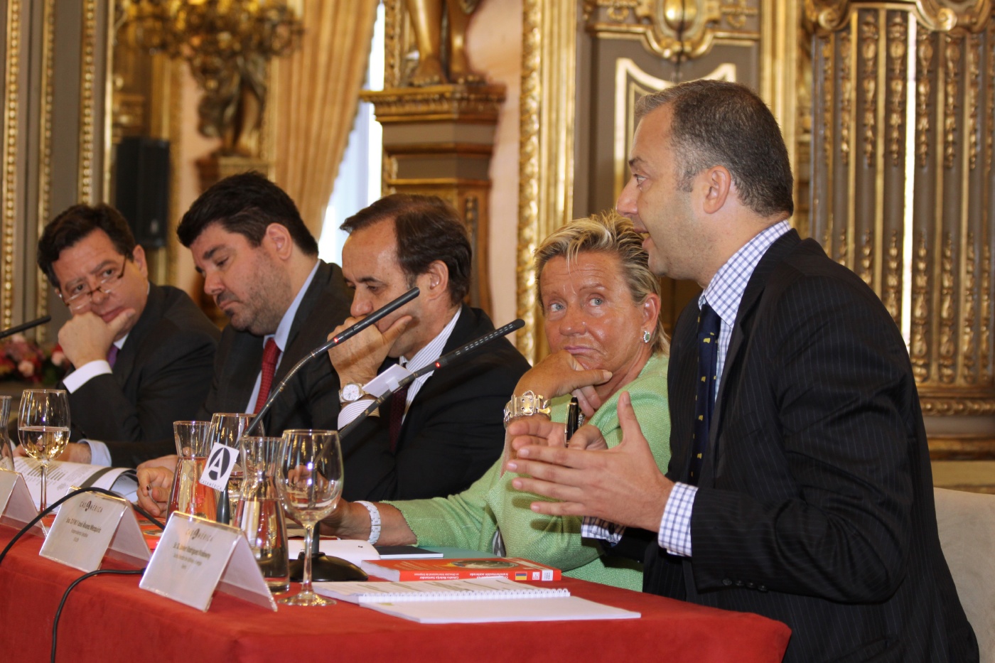 Qué ofrece España y cuáles son los acuerdos de colaboración estratégicos fue el tema central del siguiente debate. En este turno se analizó la posición de emprendedores colombianos en España desde distintos puntos de vista. José Carlos García-Quevedo, director ejecutivo de ICEX-Invest in Spain, moderó la ponencia entre Pascual Martínez, asesor de Inversión Extranjera de PROCOLOMBIA, Beatriz Meneses, directora de producción e I+D+i de Supracafé, y Carlos Martínez, director Unconditional Partners SL, Franquicia Totto.