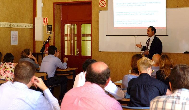 El profesor Álvaro Bustinduy, vicerrector de Investigación, dirigió la presentación, en la que se establecieron las nueve áreas de investigación estratégica en las que se quiere priorizar la actividad investigadora de la Universidad. El objetivo fundamental es alinear este marco de áreas de investigación con los doctorados y la actividad de los grupos de investigación. El vicerrector dijo que “se establecerá un plan estratégico para cada grupo, con un conjunto de objetivos que dependerán de su productividad y el diagnóstico compartido que se les haga. Los objetivos irán acompañados con acciones de apoyo específica del vicerrectorado, con el fin de consolidar al grupo”.