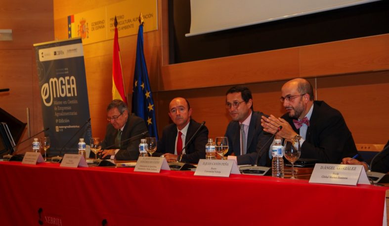 Tras una jornada de ponencias centradas en la gestión y el futuro del sector agrícola, este jueves 17 de septiembre ha tenido lugar el acto de clausura y la entrega de diplomas de la quinta edición del Máster en Gestión de Empresas Agroalimentarias en el Ministerio de Agricultura, Alimentación y Medio Ambiente. El objetivo de esta jornada, presidida por el rector de la Universidad Nebrija, Juan Cayón, y por el subsecretario del Ministerio de Agricultura, Alimentación y Medio Ambiente, Jaime Haddad, es reunir a profesionales del sector en un espacio de debate e innovación, favoreciendo el intercambio de ideas.