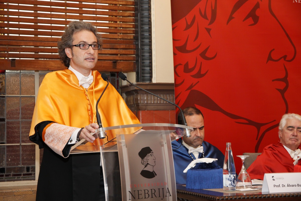 Fernando Tomé, decano de la Facultad de Ciencias Sociales de la Universidad Nebrija, pronunció la lección inaugural Los estudios universitarios y su relación directa con la empleabilidad. Tomé hizo un análisis exhaustivo sobre cifras de empleabilidad para desmontar mitos relacionados con la universidad española, no sin parte de autocrítica. Aconsejó a los alumnos: “Sin duda el paso por la universidad es el mejor antídoto contra el desempleo, reduciendo en casi la mitad su posibilidad”.