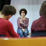 Para que los alumnos comprendieran mejor sus palabras, la actriz realizó junto a ellos varios ejercicios de relajación y visualización muy parecidos a los que cualquier intérprete lleva a cabo para la configuración de sus personajes. Los alumnos de Artes Escénicas comprendieron enseguida el mecanismo que se activa en esta “concentración creativa”, mientras que los de Comunicación Audiovisual pudieron descubrir, de primera mano, cuáles son las herramientas que los actores ponen en funcionamiento para meterse en la piel de cualquier personaje.